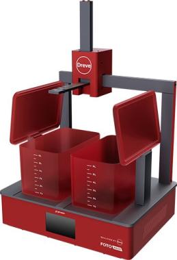 Reinigingseenheid voor 3D-geprinte onderdelen na het printproces. Apparaat met magneetroerder en automatische overdracht tussen de twee reservoirs. Via het touchscreen kunnen verschillende reinigingsprogramma's worden geselecteerd en aangemaakt. Het platform van de Sonic XL 4K kan rechtstreeks op de unit worden aangesloten en samen met de aangehechte componenten worden gereinigd.