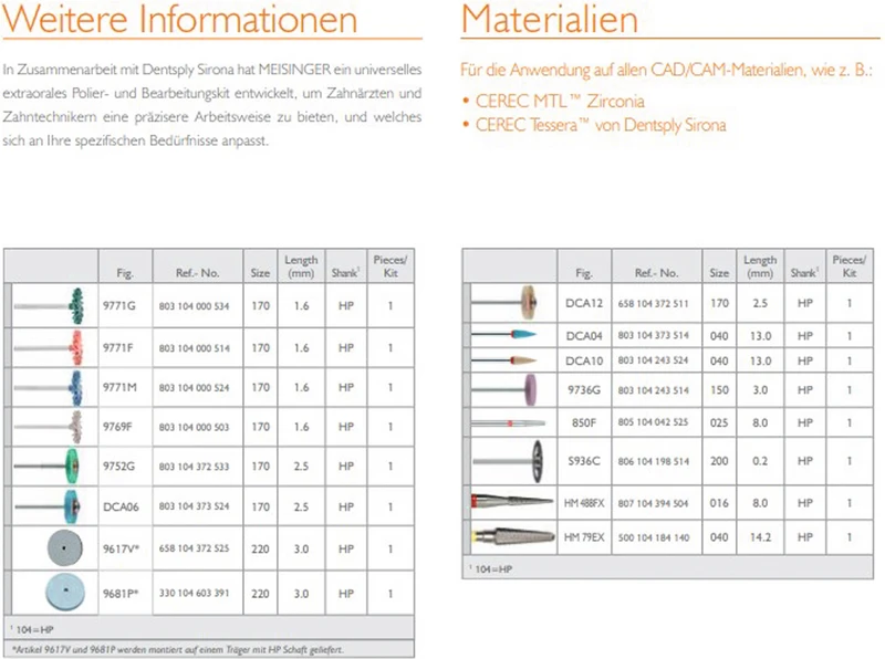 Aanpassingsset DA2 Kit met 6 st. (3 x frezen, 3 x polijsters)